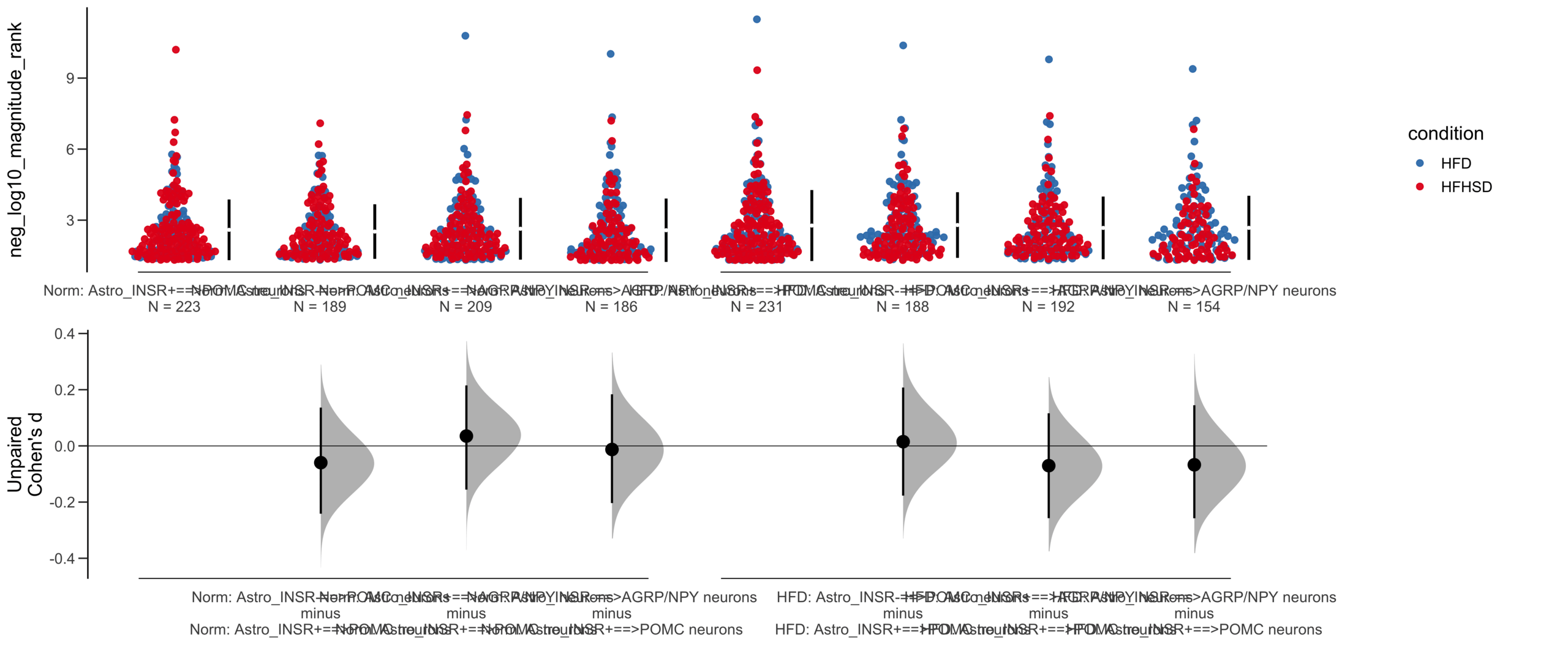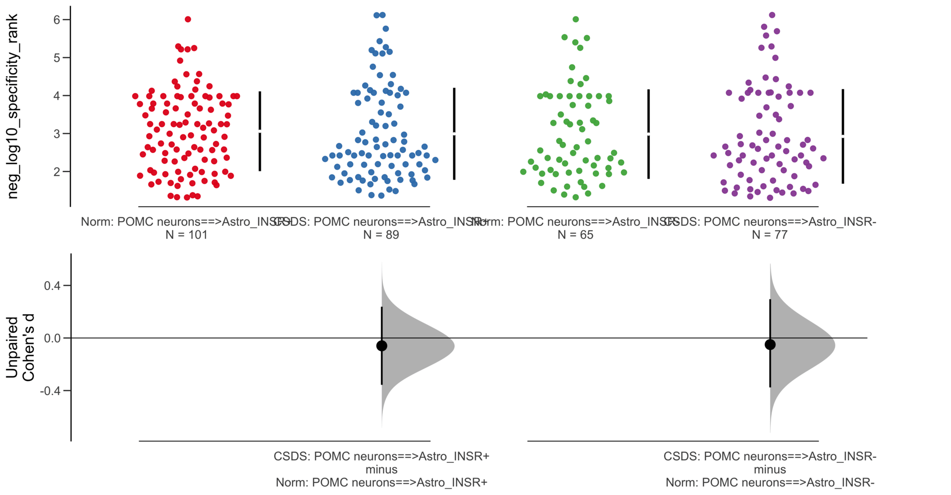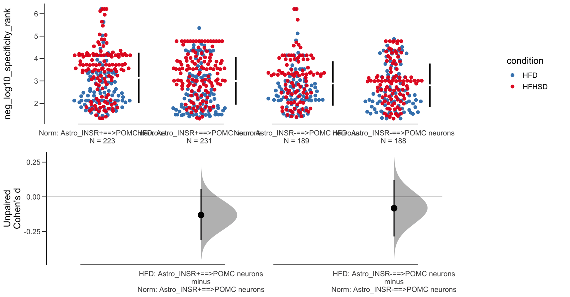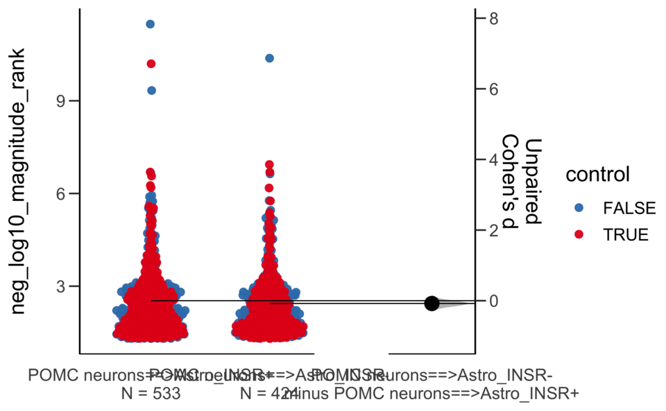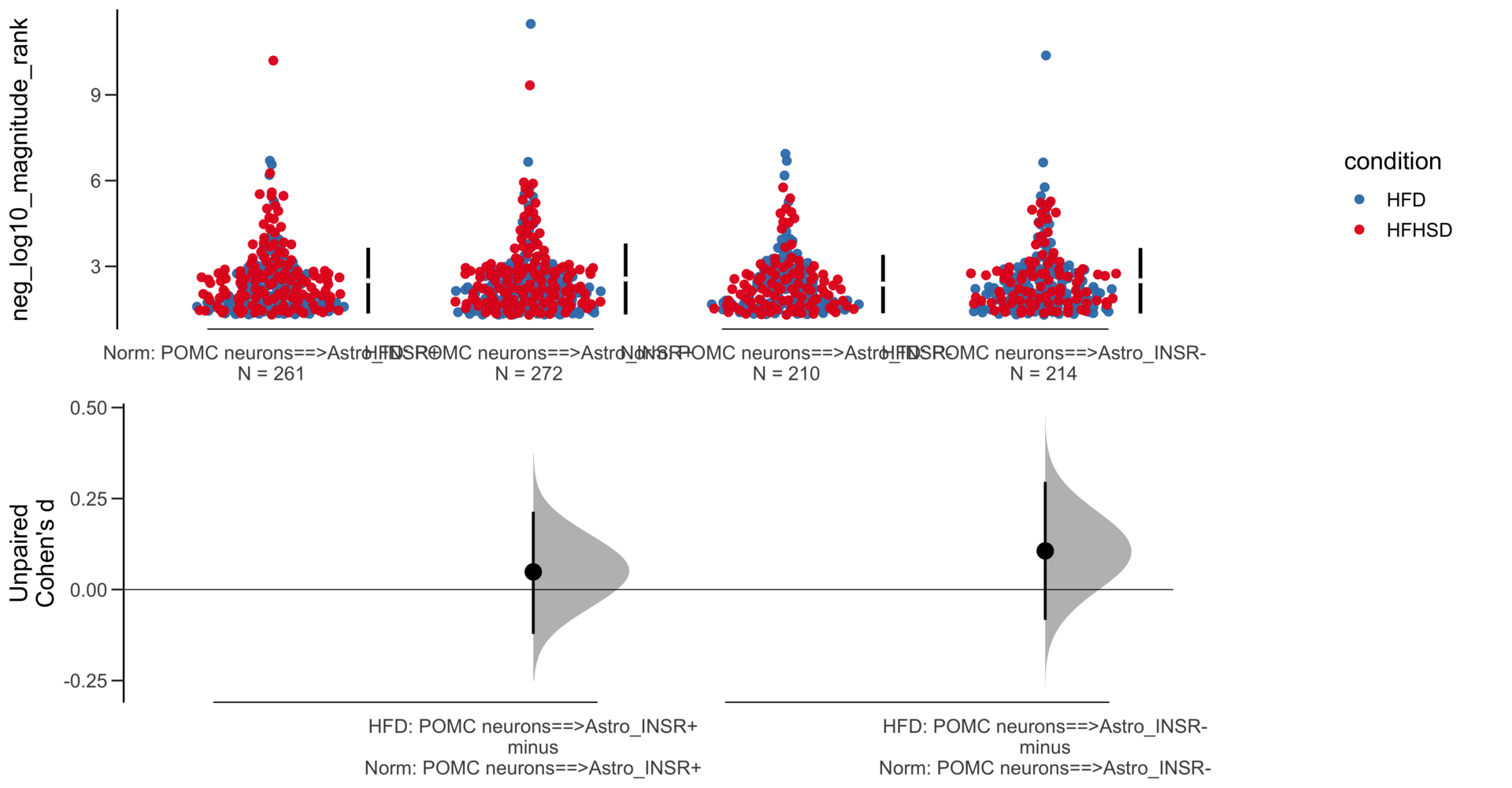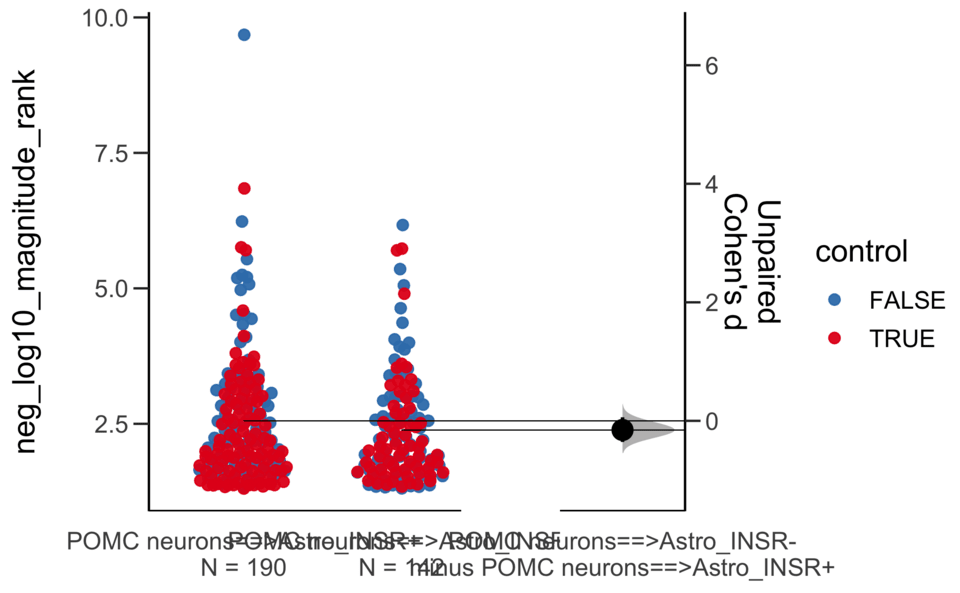 Unpaired Cohen's d of POMC neurons==>Astro_INSR- (n = 424) minus POMC neurons==>Astro_INSR+ (n = 533)