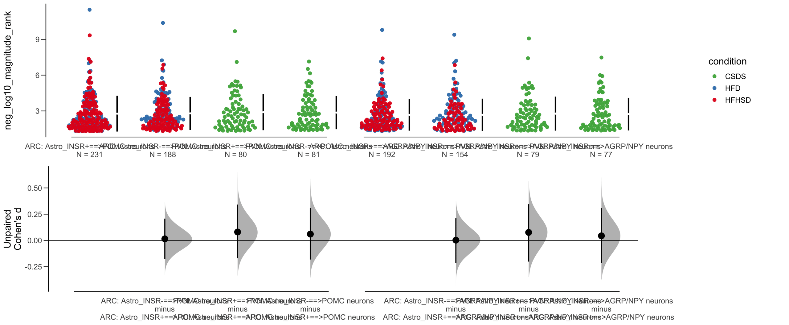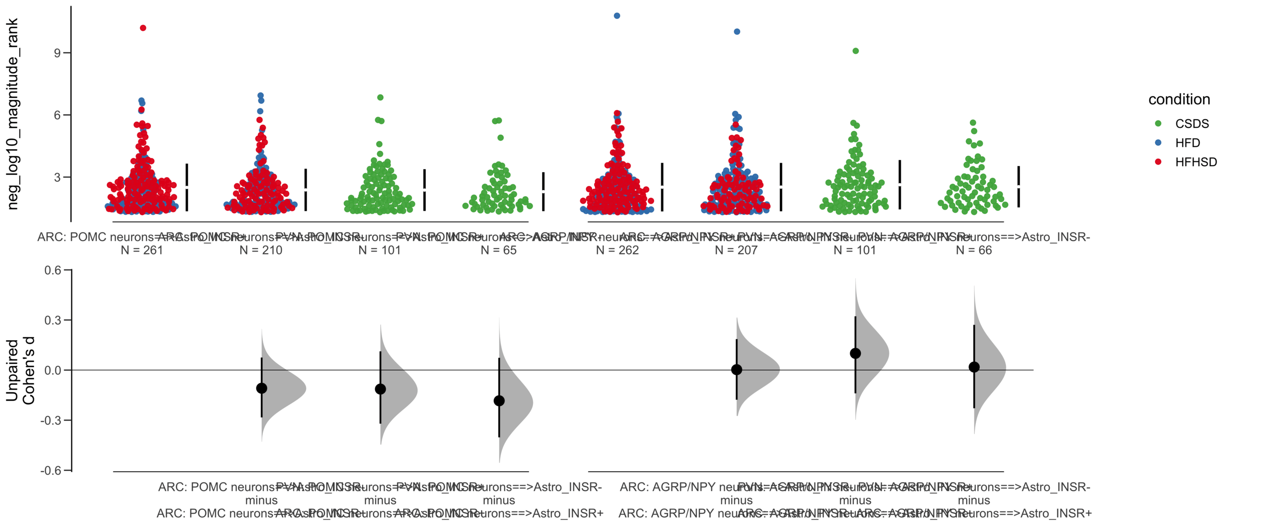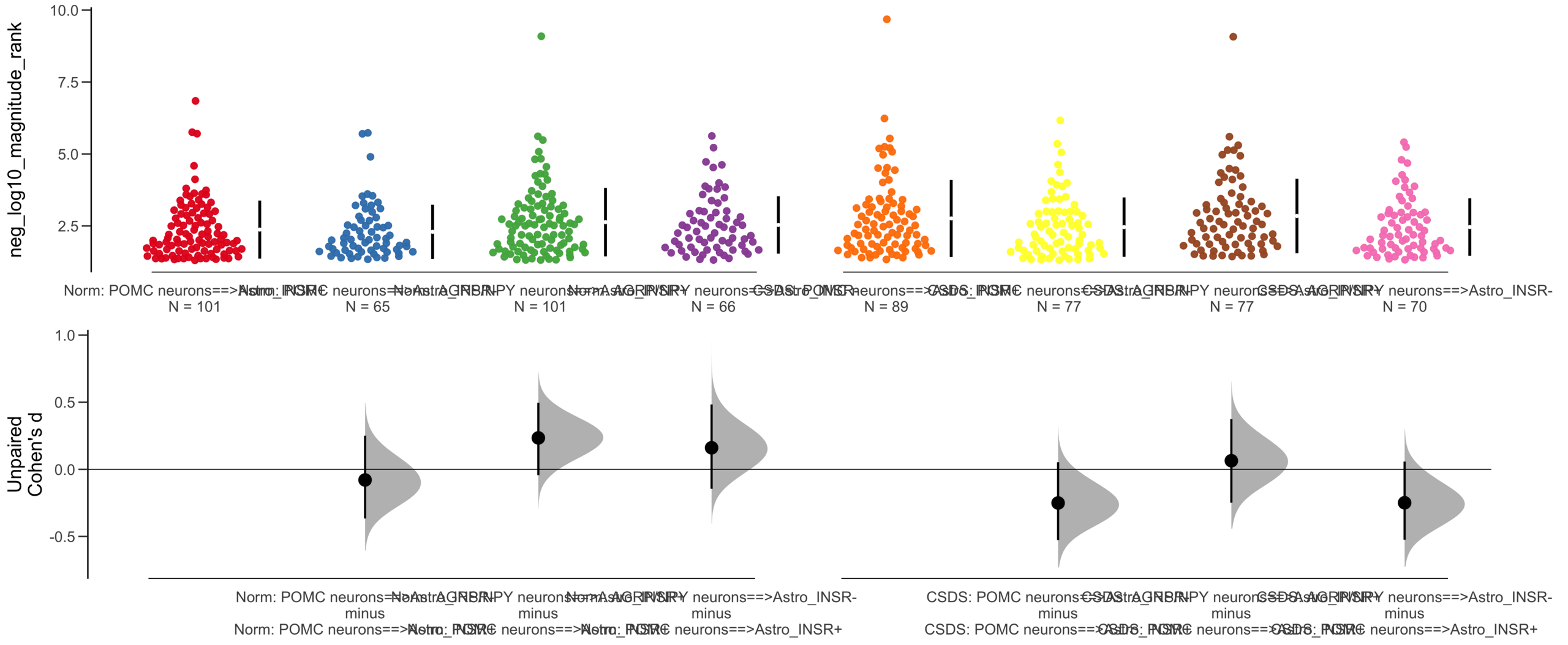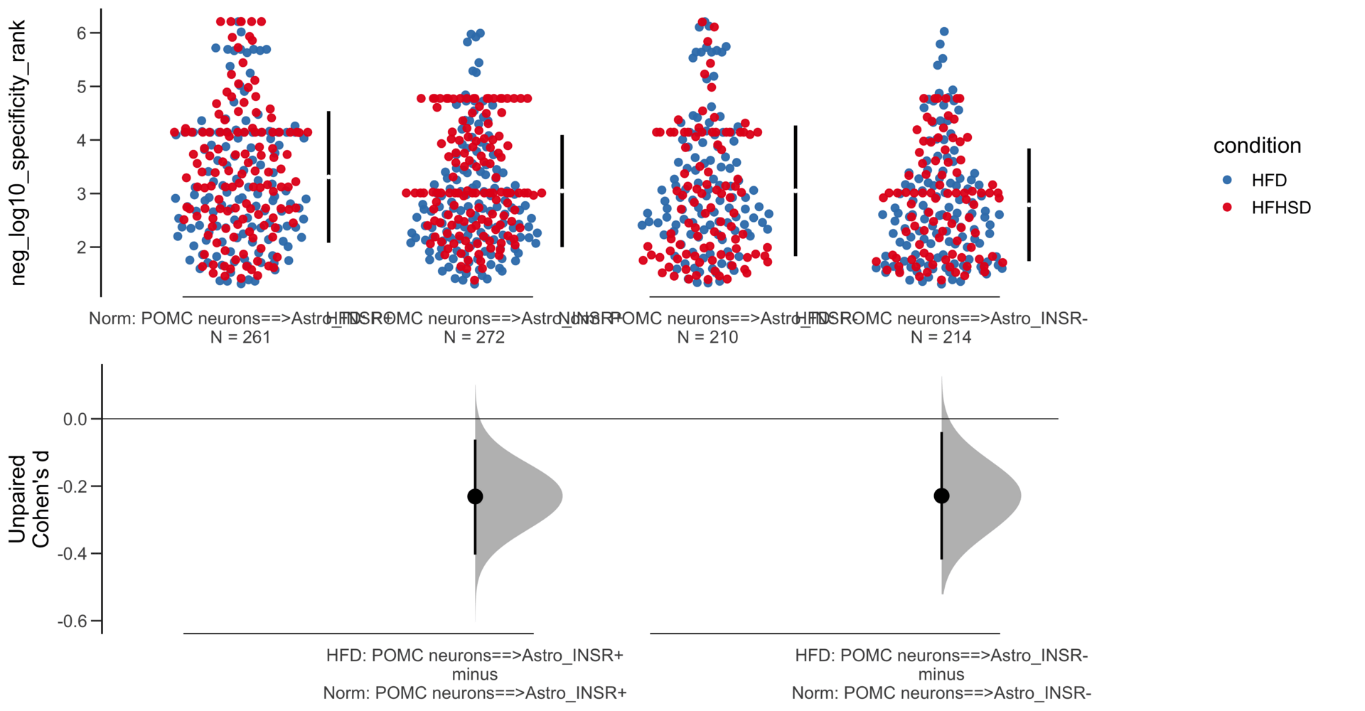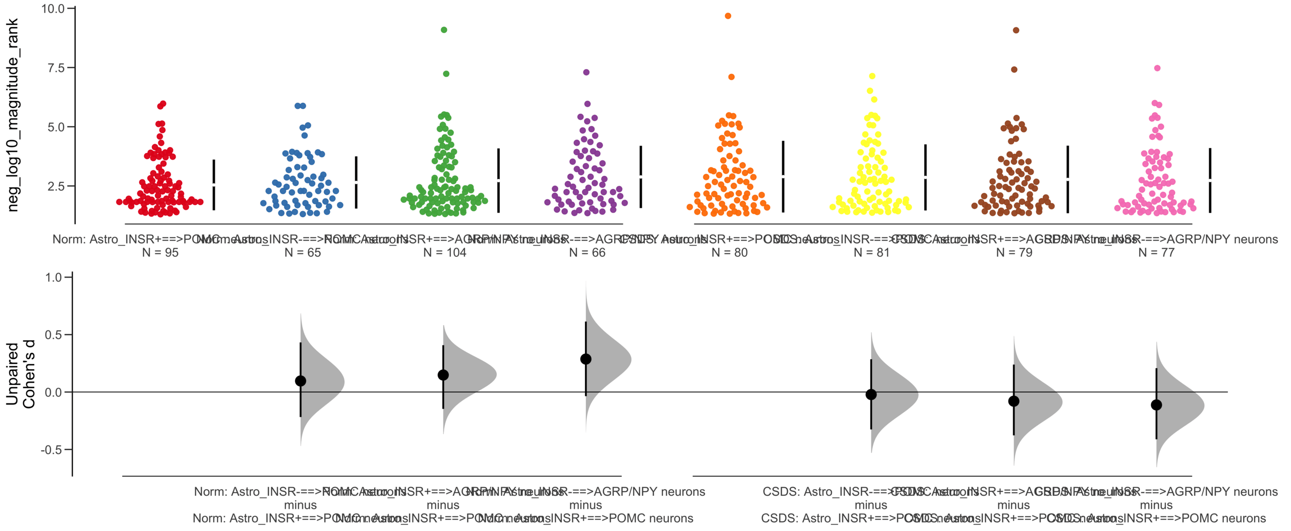 Unpaired Cohen's d of POMC neurons==>Astro_INSR- (n = 424) minus POMC neurons==>Astro_INSR+ (n = 533)